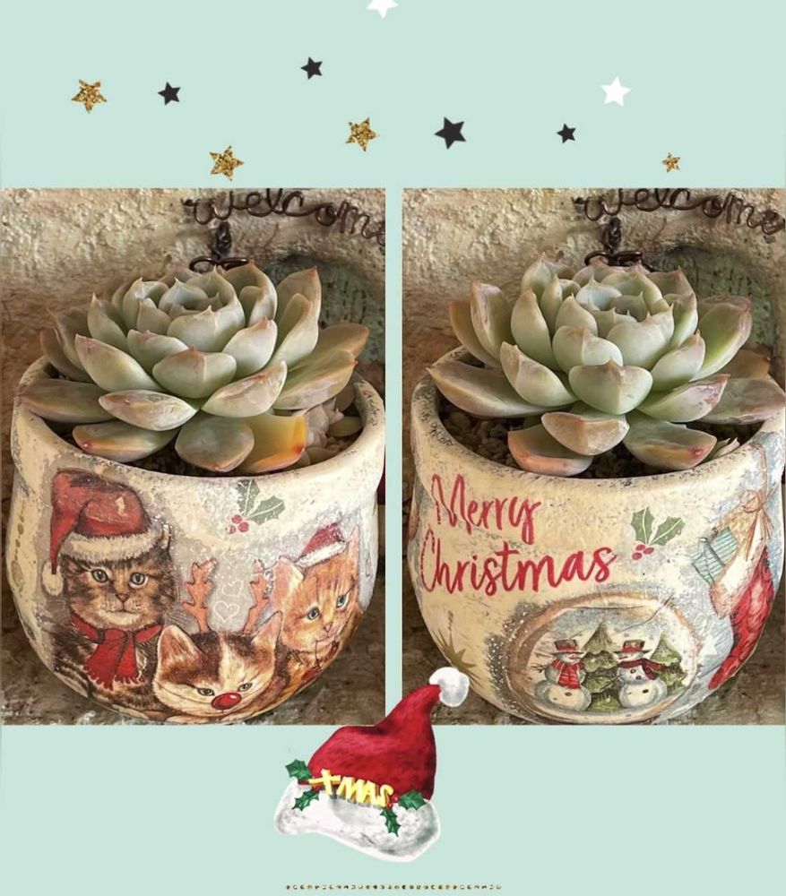 3年続けての投稿😽ねこぐるみさん作お気に入り猫サンタ鉢🐈