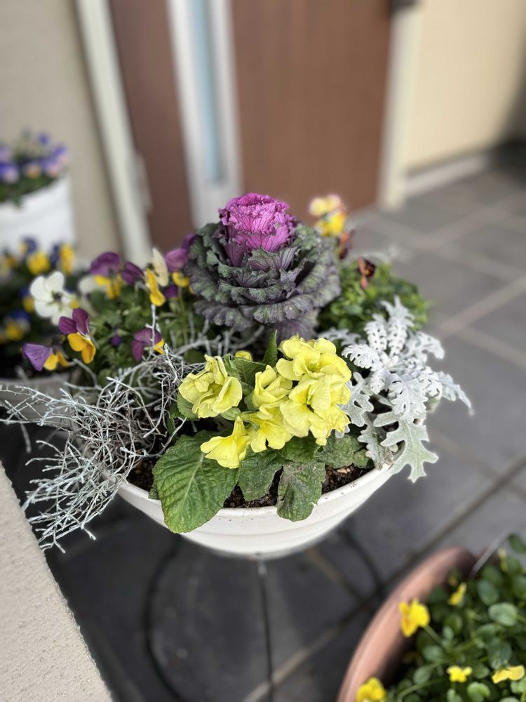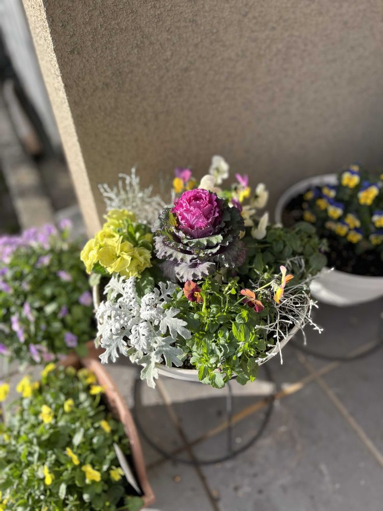 正月っぽく葉牡丹つかって寄せ植えしてみた💐