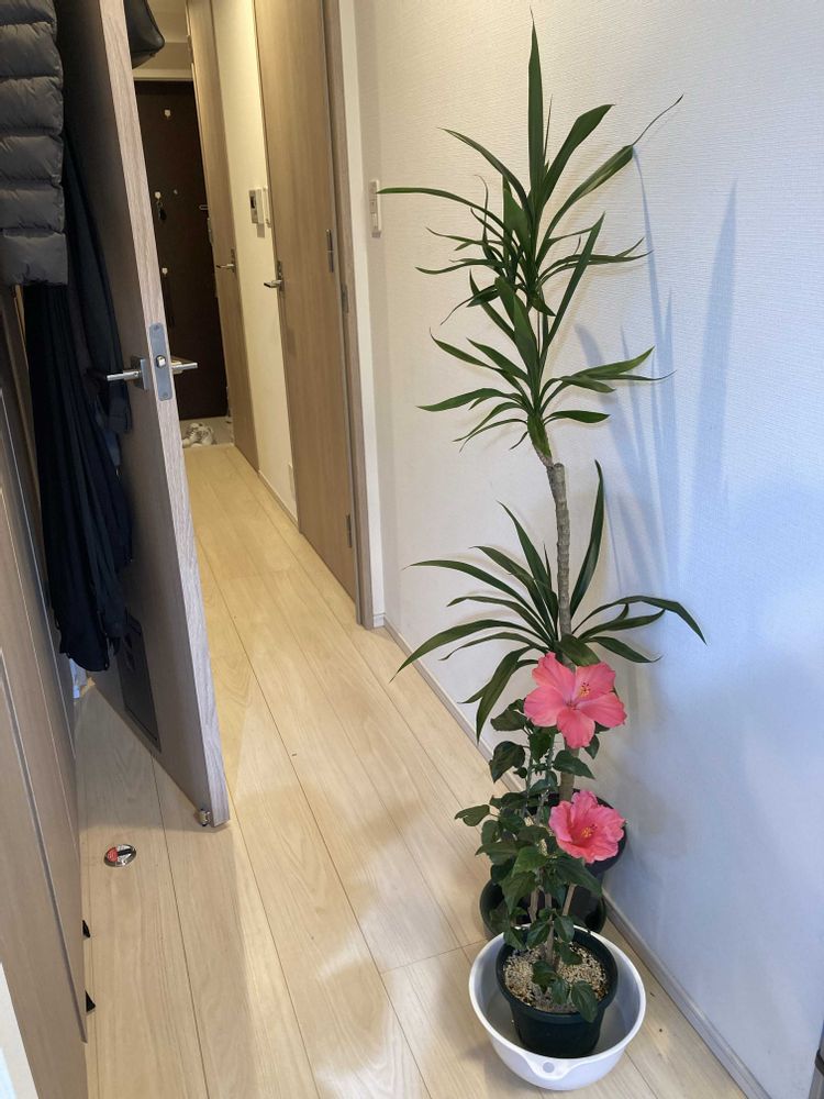 コルジリネストリクタさんとハイビスカス🌺インドアハイビスカスサニーシティ初号機😊断捨離した通路はまだまだ置けます😊