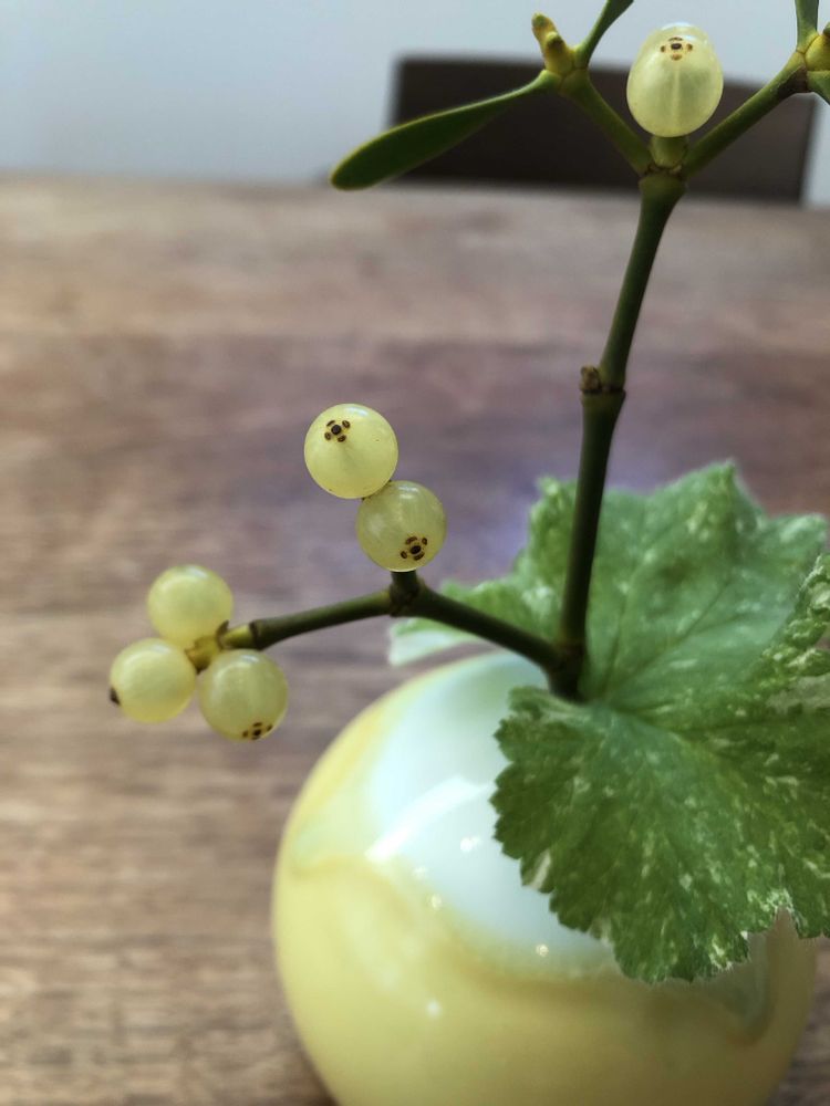 ヤドリギの実の先が花模様みたいで可愛いことに気づきました。
