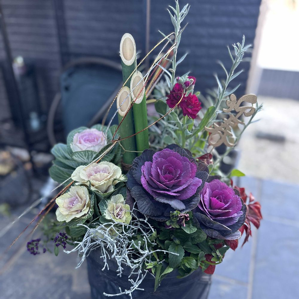 玄関前の寂しいプランターにビオラと葉牡丹を追加。