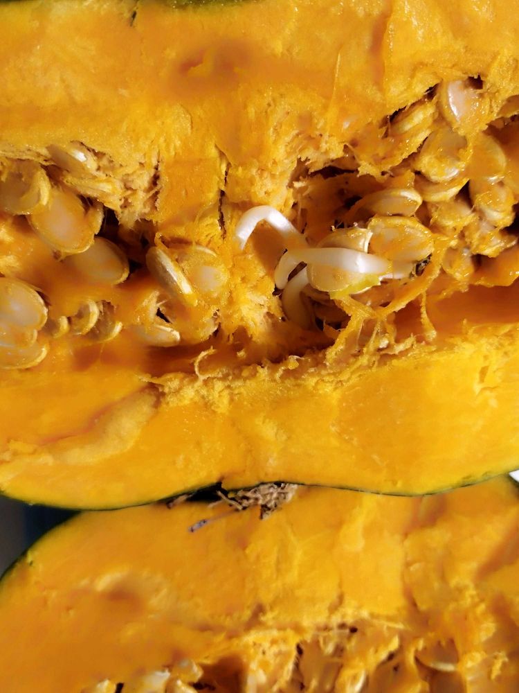 昨年自宅で育てたかぼちゃの何個かは、切ったら種からもやしのようにいっぱい芽が出ていました。