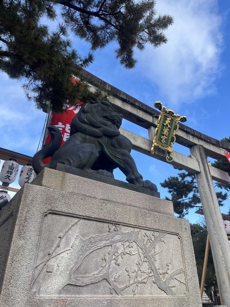 鳥居⛩️と狛犬のpicですが、狛犬の台座に梅が彫られているのに初めて気づいたので