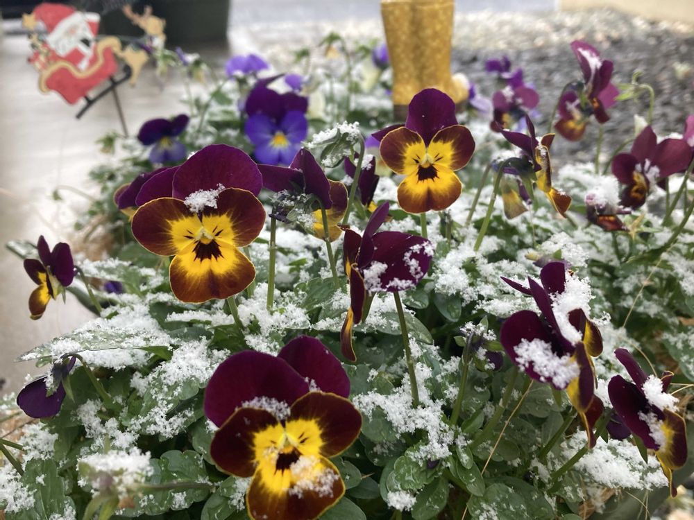 玄関先のビオラにも雪と北風の洗礼が…本格的な冬が始まりました…雪を見ると「いよいよ」という思いになります😹