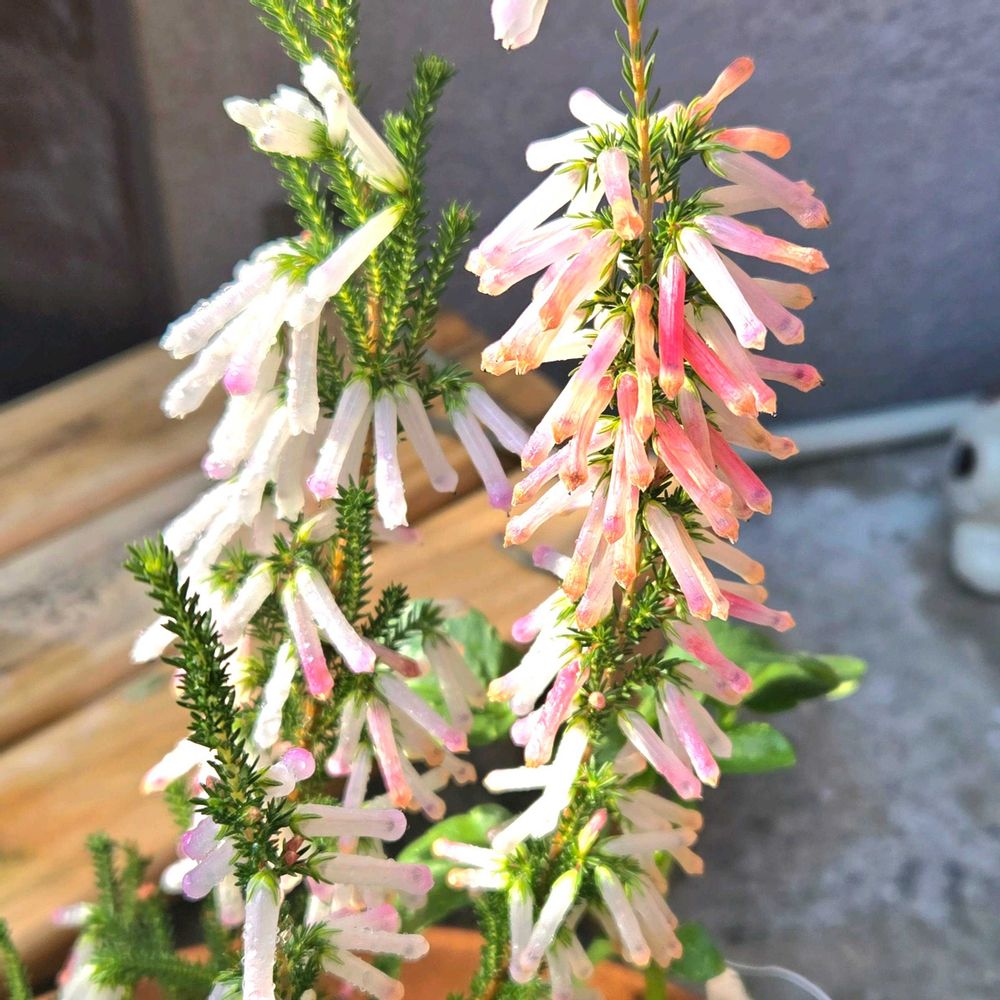 エリカさんも、デザートローズさんも、軒下ですヨ少し冷えたので赤くてなってきました。