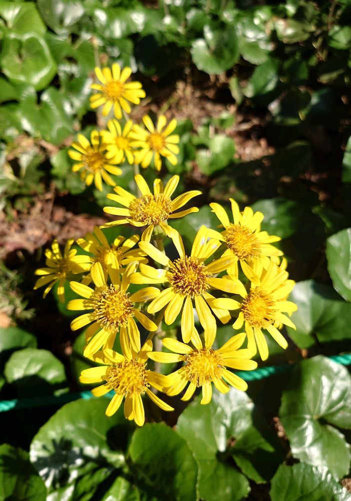 日差しを浴びてツワブキの美しい黄色がとても引き立ちますね。