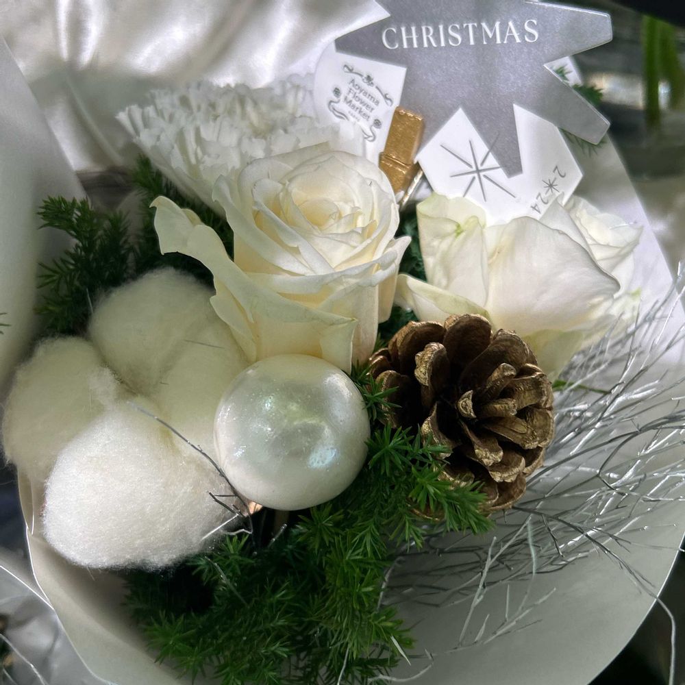 1枚目のお花、クリスマスに白いバラも可愛いね🎄🤶