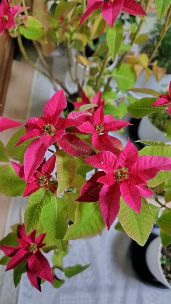 プリンセチアカランコエ、ハイビスカスと寒い中でも元気なのは、嬉しいですね🏵🌼🌸