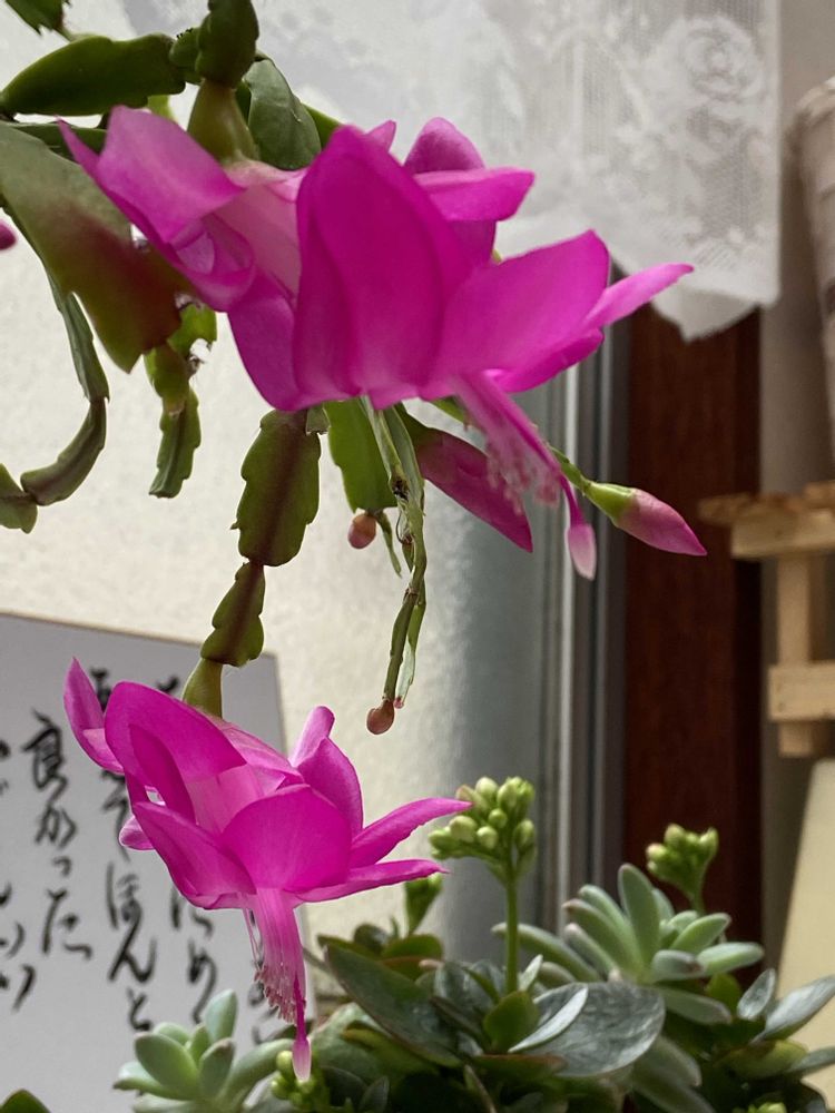 ピンク色のシャコバサボテンも花が咲きました🩷