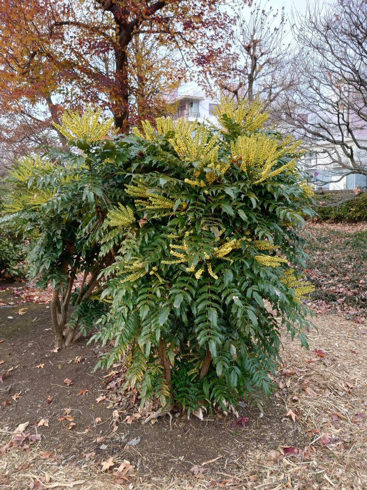 ヒイラギナンテンの黄色が鮮やかで見事ですねー
