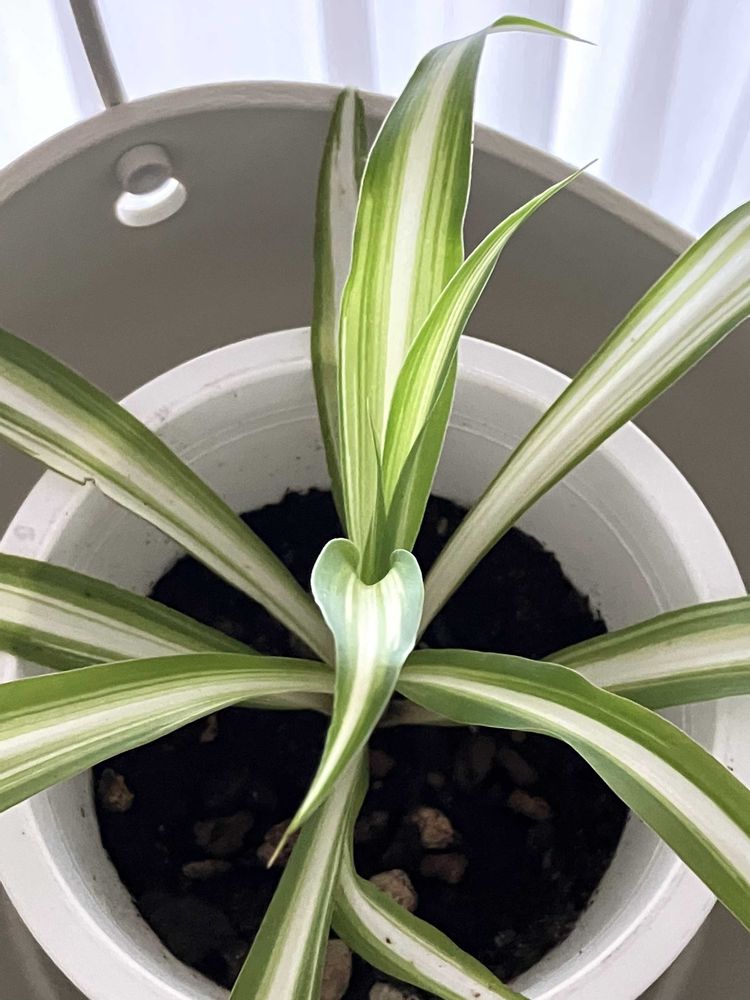 観葉植物のオリヅルランの花言葉には「集う祝福」「子孫繁栄」「祝賀」「守り抜く愛」などがあり素敵です。🌼🏵️😄