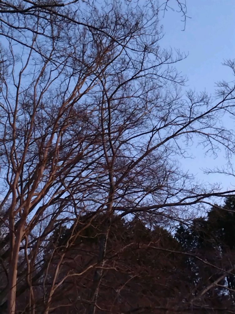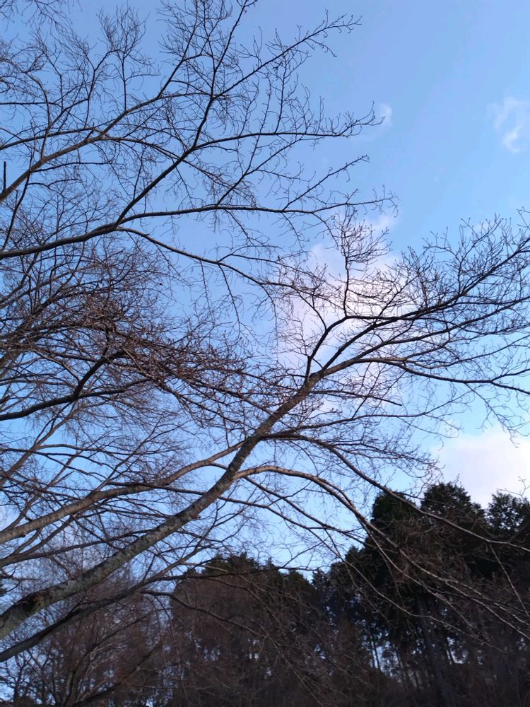 あななさんの自宅前の山,冬の夕方の空,桜の裸木の投稿画像