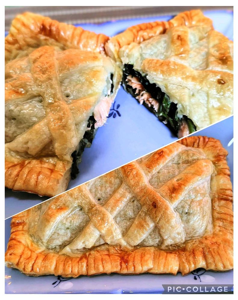 サケとほうれん草のパイ🥧包みも美味しそうだし😋