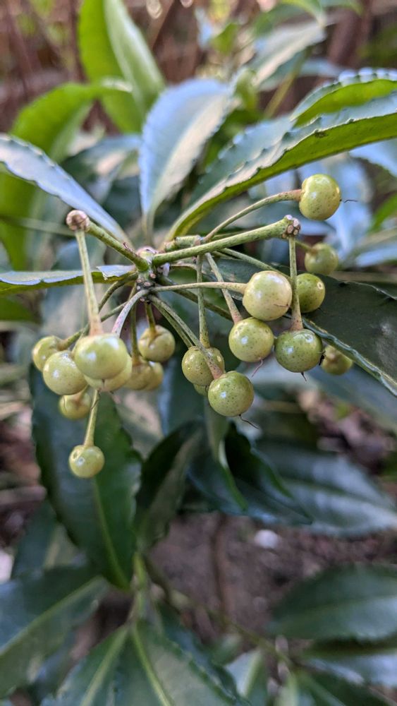 今年は万両の赤も白も申し訳ない程度にしか咲いてない