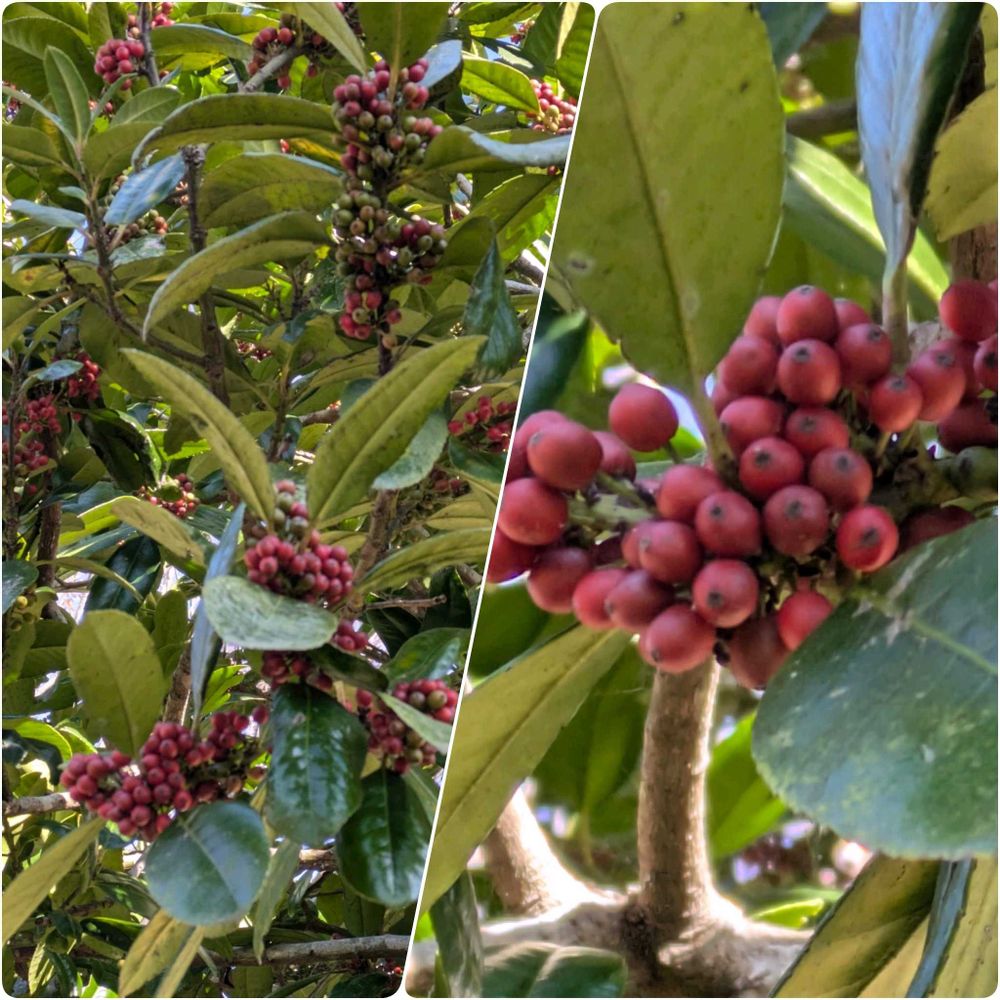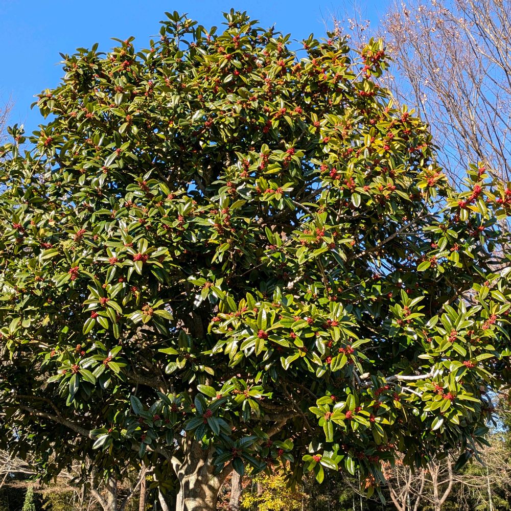 真っ赤な実がタワワに実るタラヨウの木いつも何処かで見かけますが何処だったかなぁ〜❓️🤭❓️