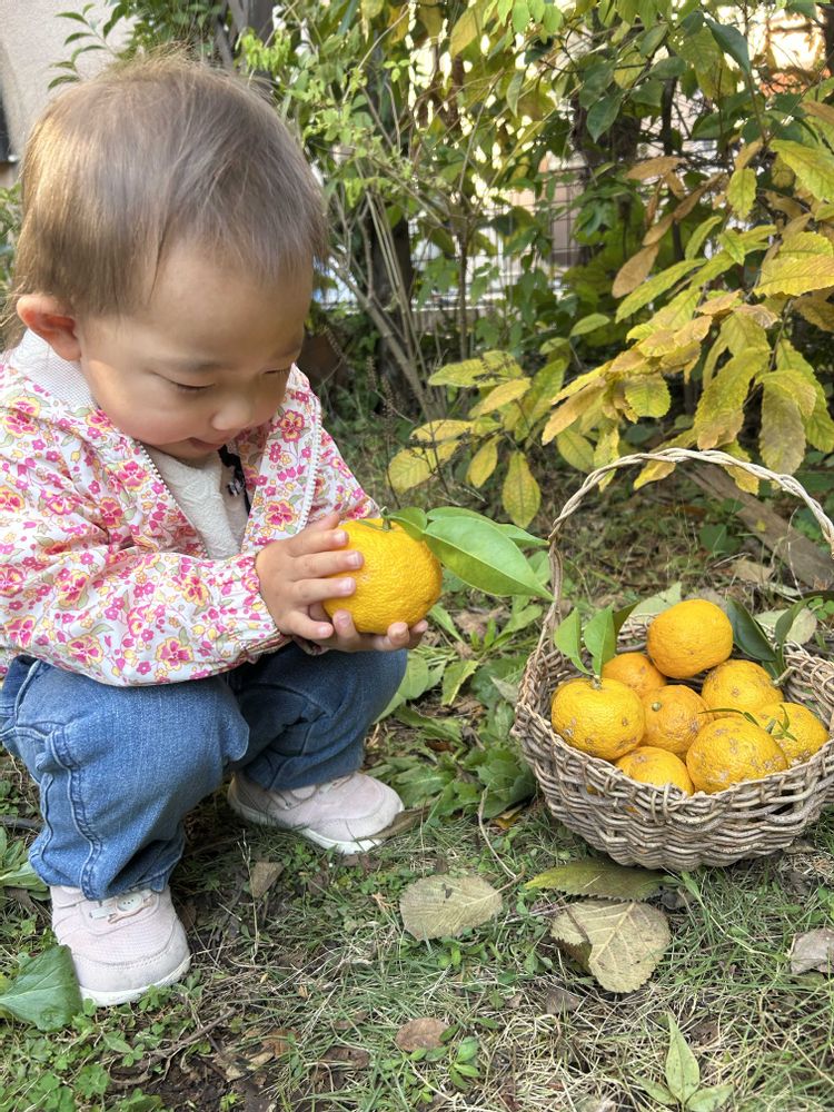 ベビ、庭にみかんが🍊と大喜びしていました✨✨すっぱいから食べられないよとわかってもらうのに大変でしたよ🤣