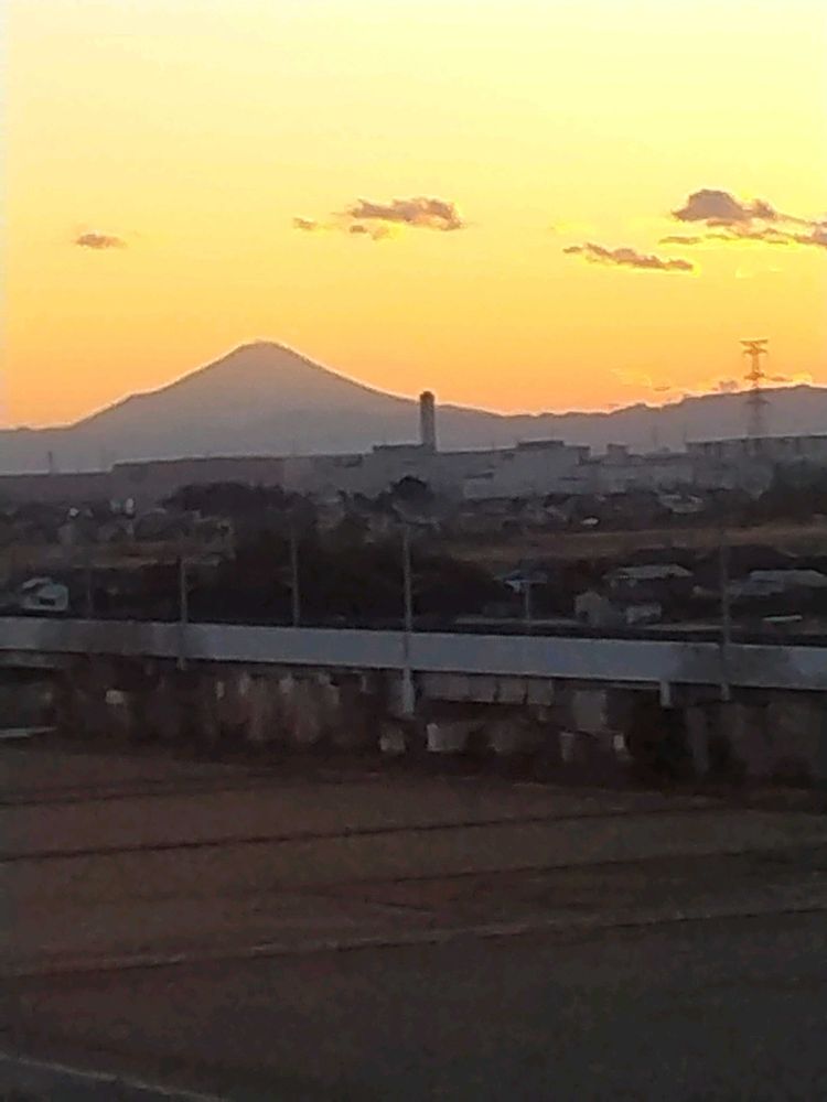 夕日の中の富士山