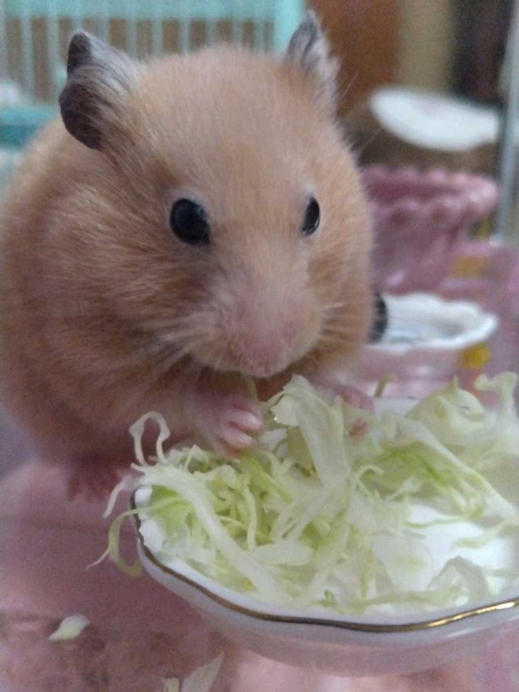 ハムちゃんてキャベツの千切り🐹食べるのねぇ(´。✪ω✪。`)💕✨