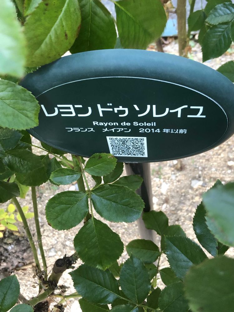 昨日、万博公園のバラ園にて、フランス🇫🇷製のバラ「レヨン ドゥ ソレイユ」をパチリ!📸💛🌿😊😄🌞✌️