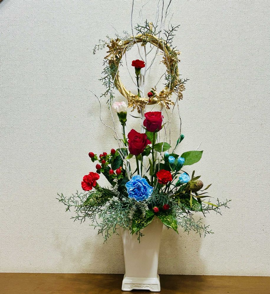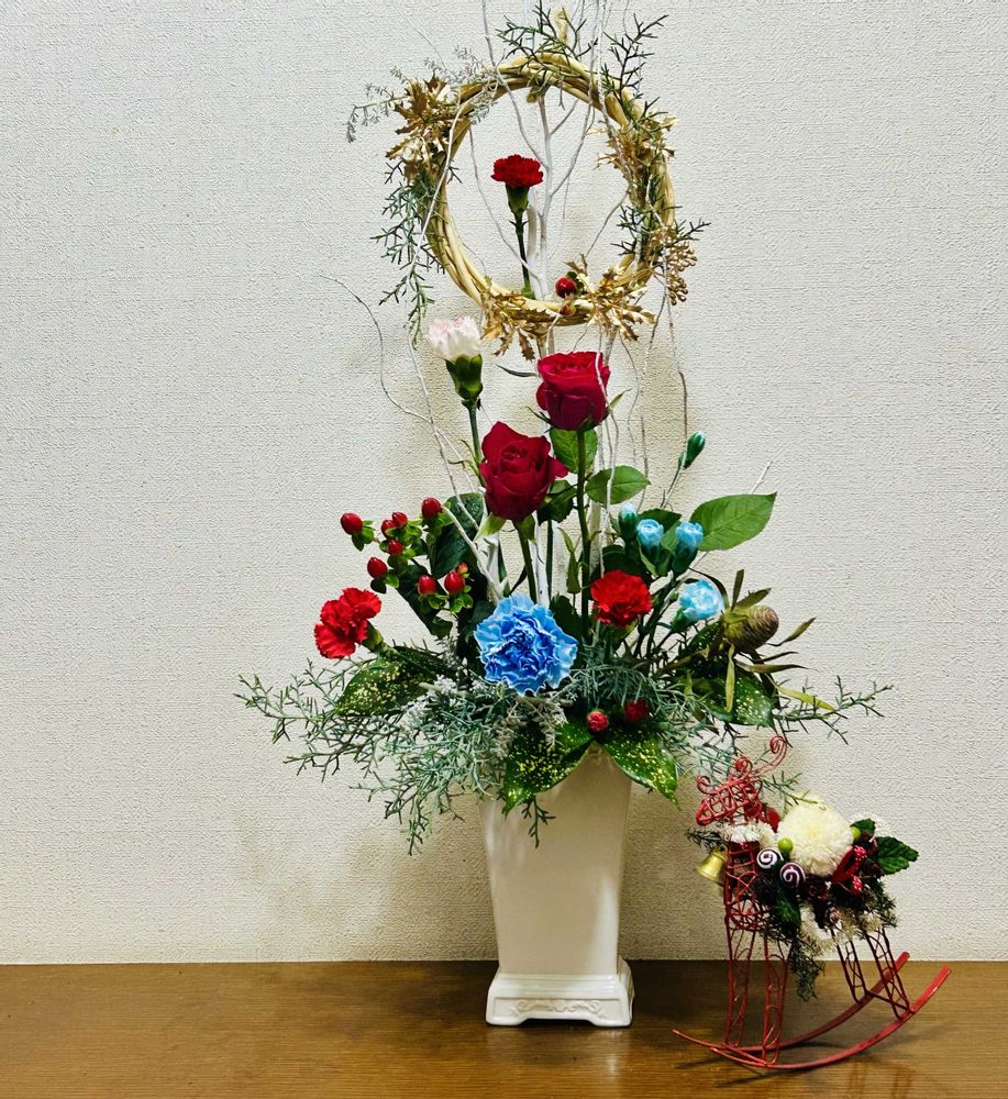 ひと月前に作った11月のクリスマスフラワーアレンジメント🎄🌹💐