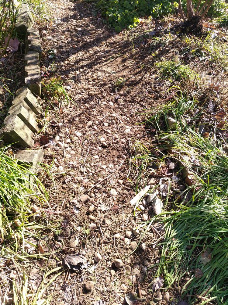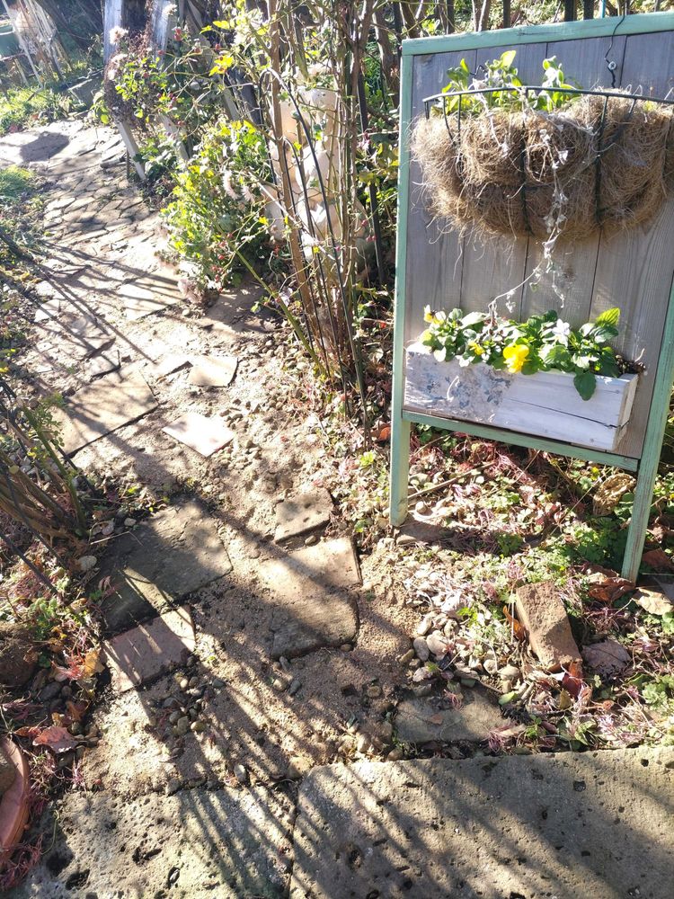 石ころもいいけどオルレアも零れ種からも生える場所。モコさんが葉っぱアート今年分をみどりのまとめにしてくれました。モコさんどうもありがとうございます。