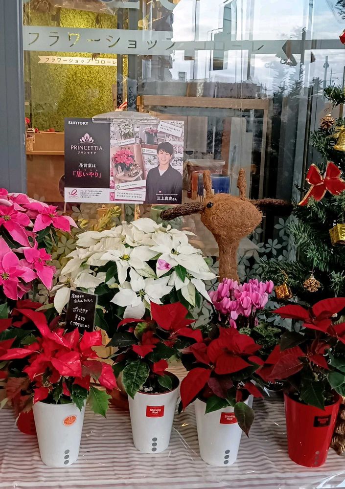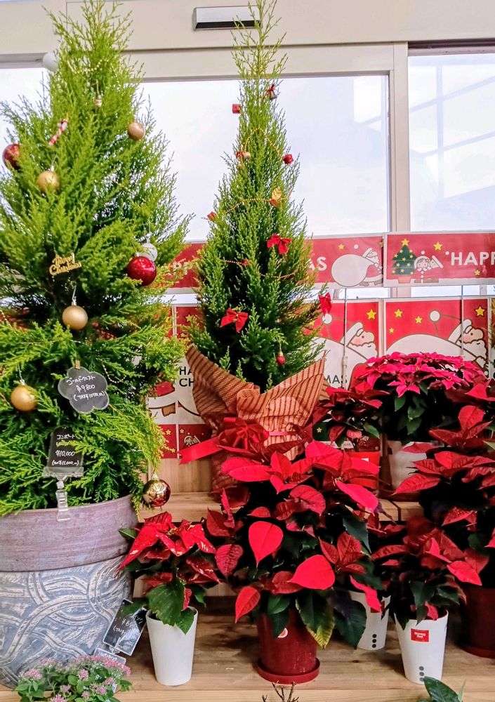 花屋さんはクリスマスの雰囲気が満載ですね。ポインセチアはやっぱりこの時期には欠かせませんね。
