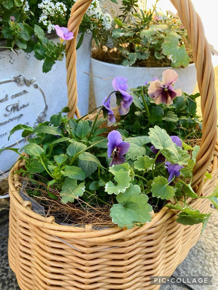 ビオラとグルコマを籠寄せにしました🧺💜🩷🍃