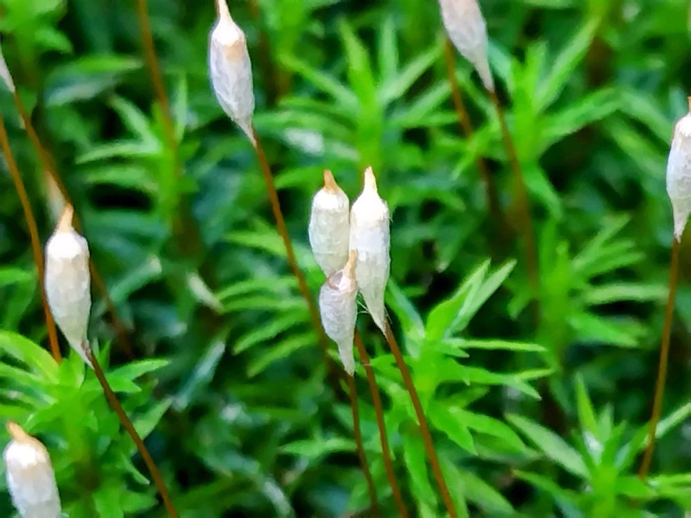 季節のせいもあったのかコケから上に向かって白い朔(サク)という胞子が入ったカプセルのようなものがニョキニョキ沢山伸びていてコケの神秘的な姿を目にすることができました😃