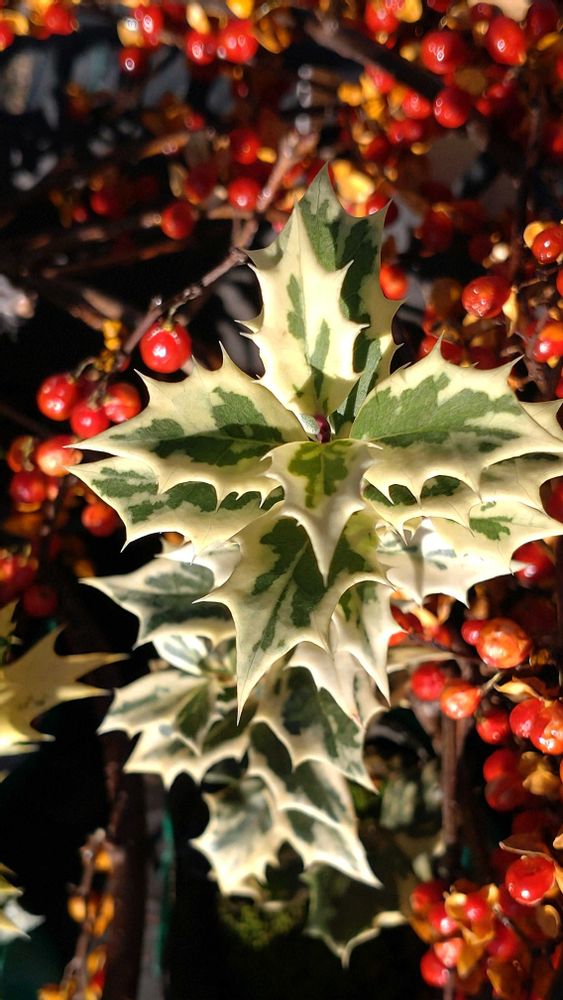 🙋♀𖠰 ⁎꙳ヒイラギ 冷たい風よけに 葉っぱが斑入り