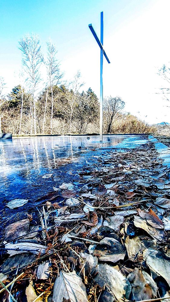 凍って天然スケートリンクの様に