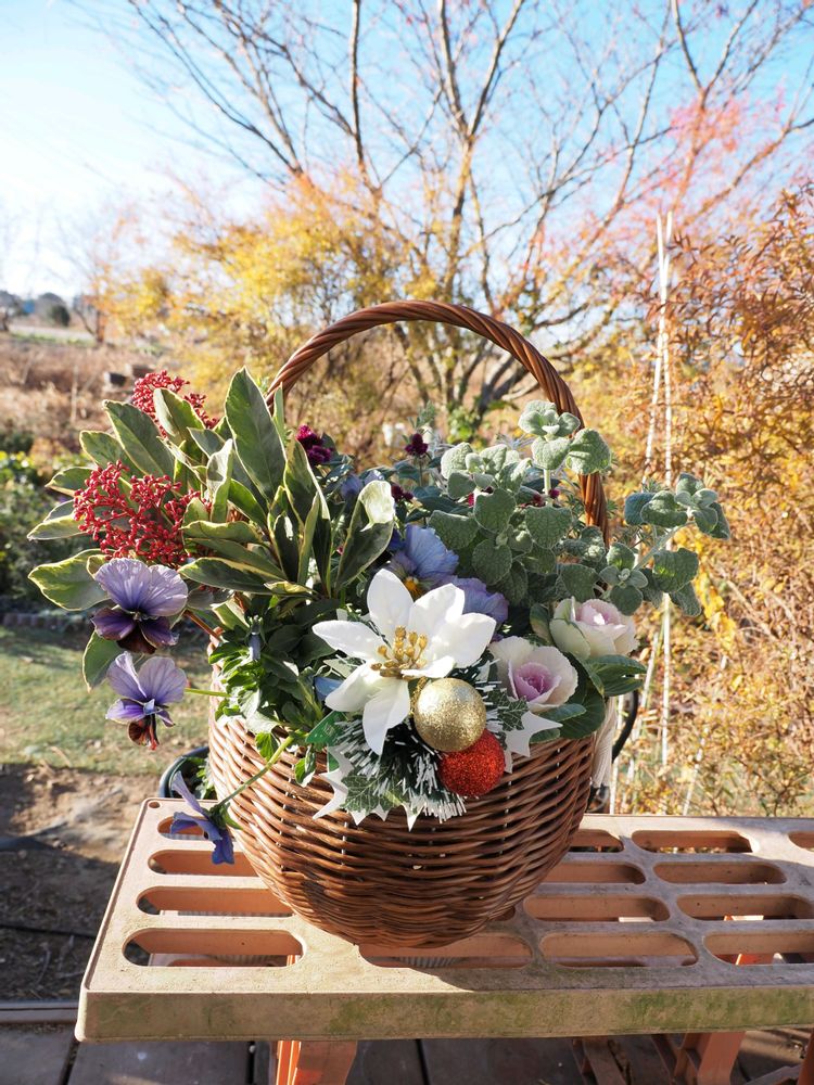 前に作った寄せ植えにクリスマスらしい飾りを入れただけですが(笑)