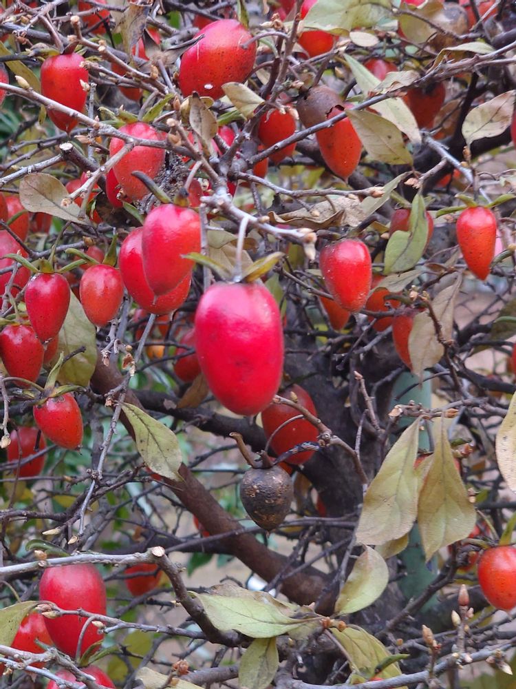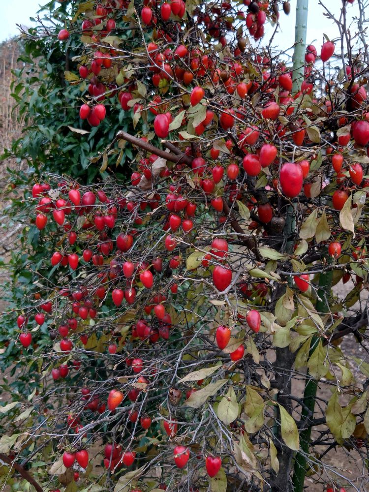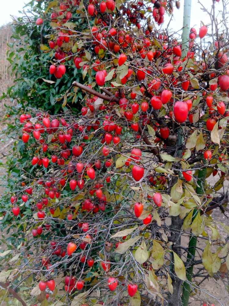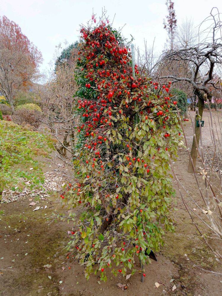 まさに鈴なりでした。けっこうな重さだと思うのですが、添え木が施されているようです。お正月に似合いそうです🙌