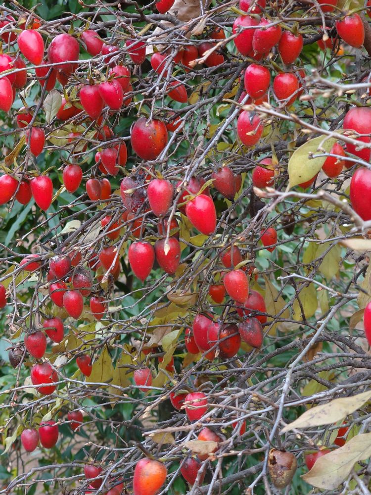 ひょー👀 たくさん実っています🙌 ロウヤガキです。ミニトマトみたいですが、「実はほとんどがタネで、食べられない」とか📖