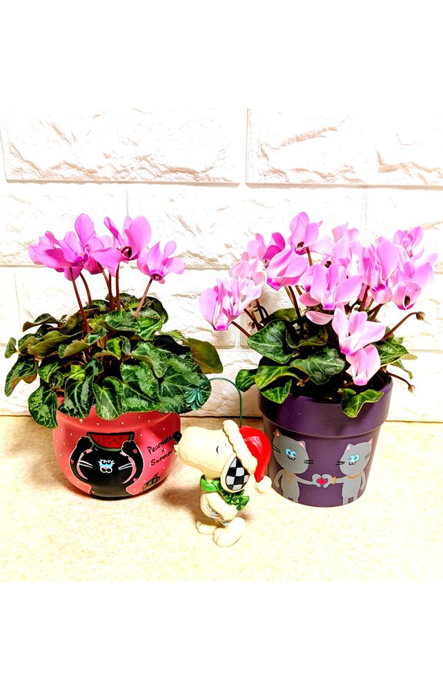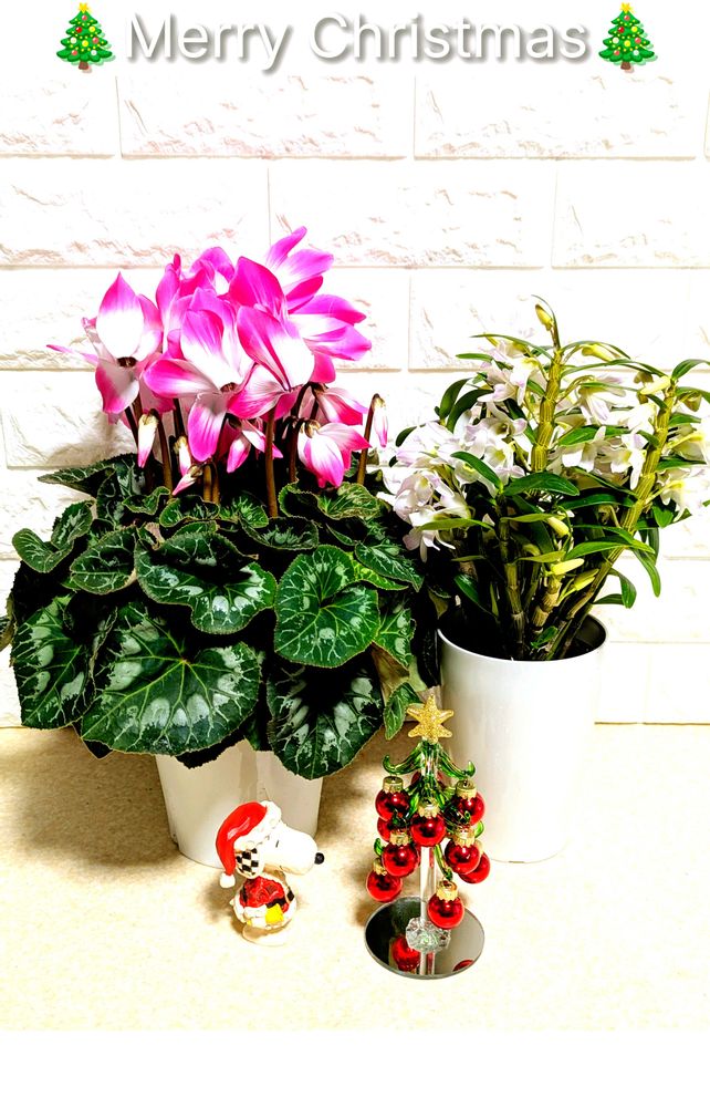 華やかシクラメンちゃんに、かわいい💞🎅スヌーピーちゃんぴったりですねっ💐😄🎄🥂🪂