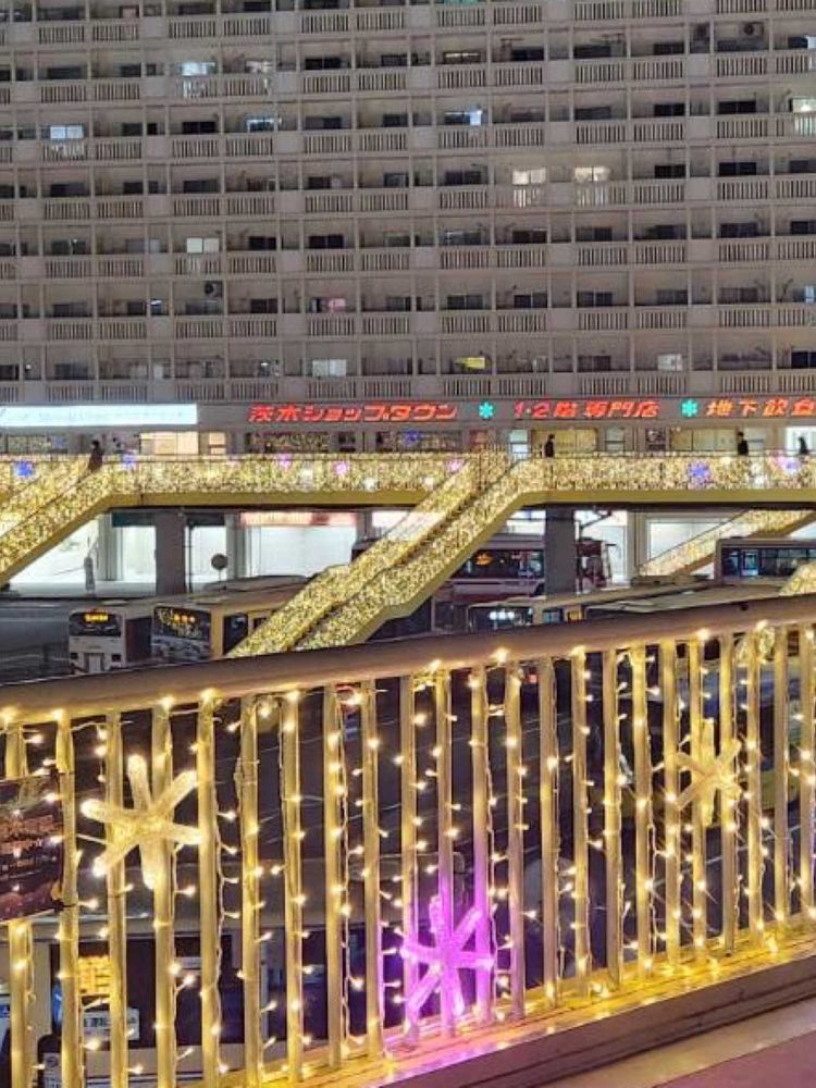 我が町茨木市駅前のイルミネーションで飾られている風景です。