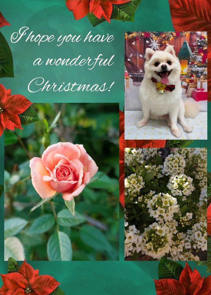 3枚目📷:同僚さんのお家の癒やしの白ポメ🐶シュクル君からもMerry Christmas✨