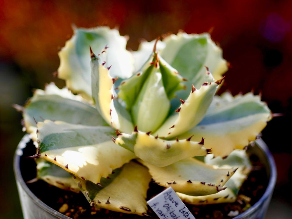 Agave isthmensis 'Ohi Kabutogani' f.variegata.