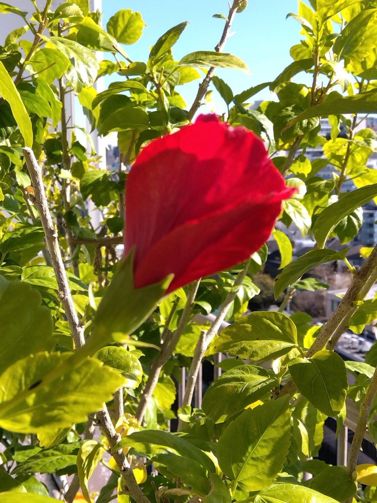 長い事咲けなかったハイビスカスもやっと蕾が開きかけて、、