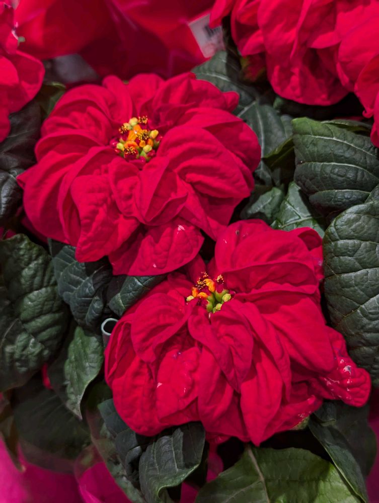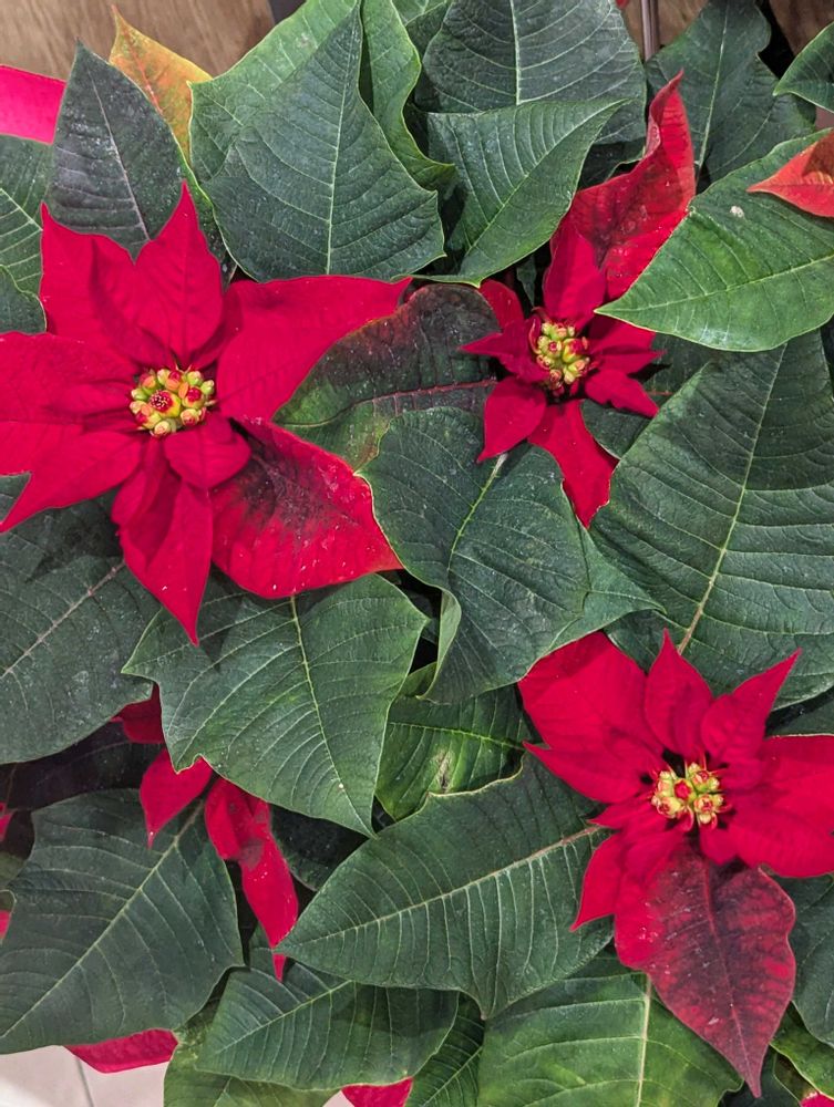 ①②バラ咲きの「ポインセチア ウィンターローズ」と言う品種に出会いました🤩✨