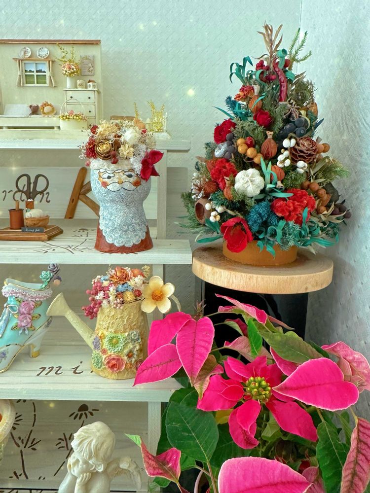 汚部屋の片隅に去年作ったクリスマス🎄アレンジ🎅✨