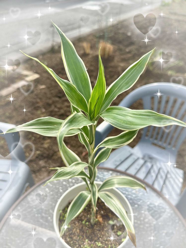 ドラセナって、生命力すごいよね✨我が家にも何年ものが忘れるくらいのがあって、横に伸びて置くとこないから一年中デッキだけど、元気!根元から子株も生えて来たし!!!あ、でも、斑入タイプはか弱いイメージだから室内で大事にね♡