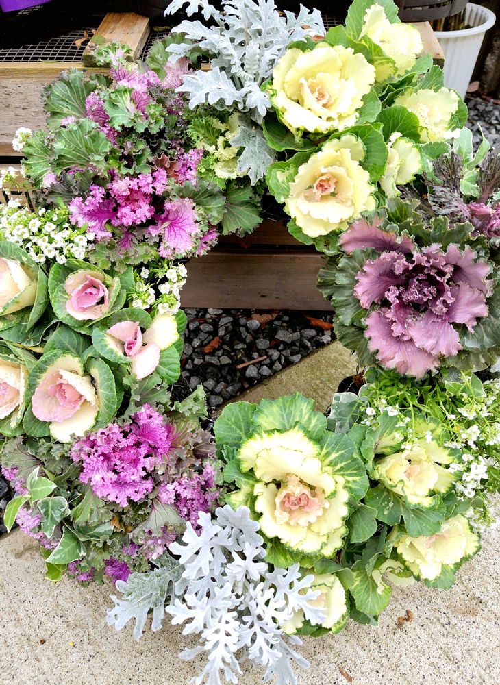 葉牡丹とのリースは綺麗で豪華ですね✨
