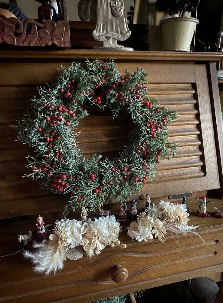 定番のドライリースもいいけど、フレッシュで華やかさのある花のリースもステキ!