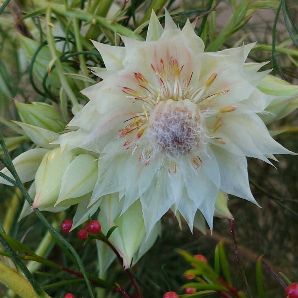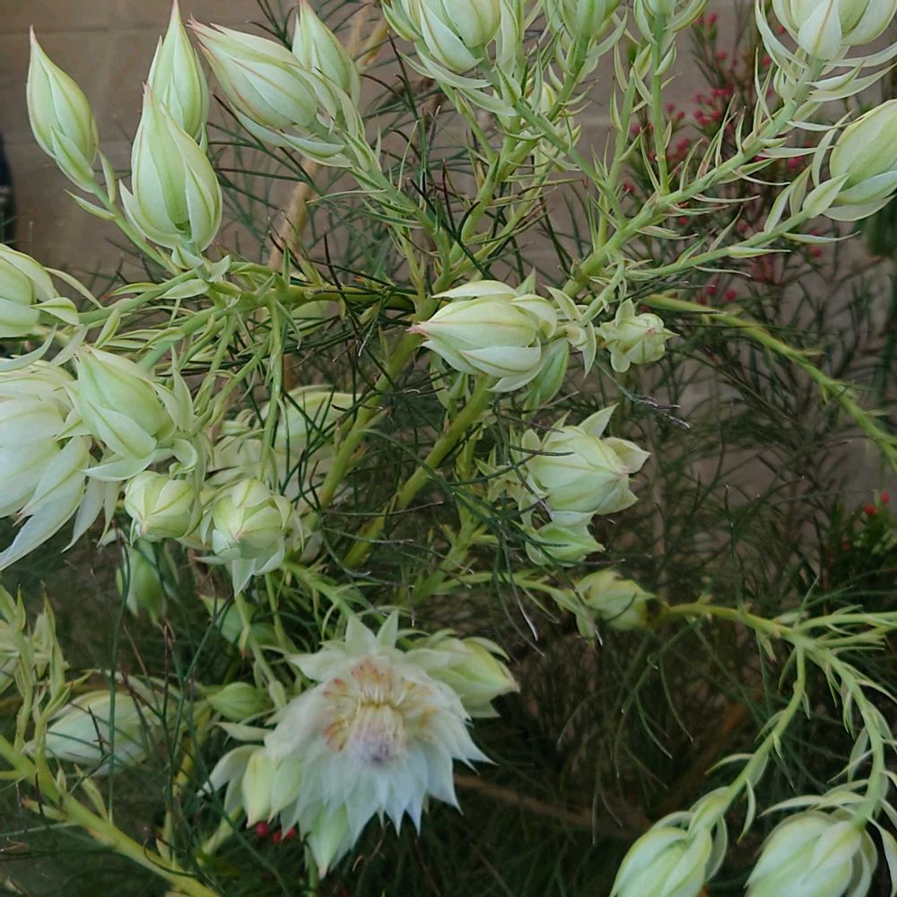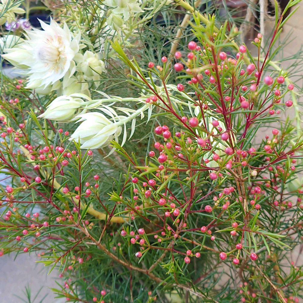 白いセルリア綺麗です〜😃 ワックスフラワーもう蕾が付いてるんですね〜❣️