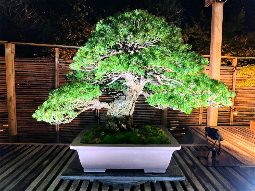 昼間に見る姿とはまた趣が異なる盆栽にうっとりとしたひと時😊
