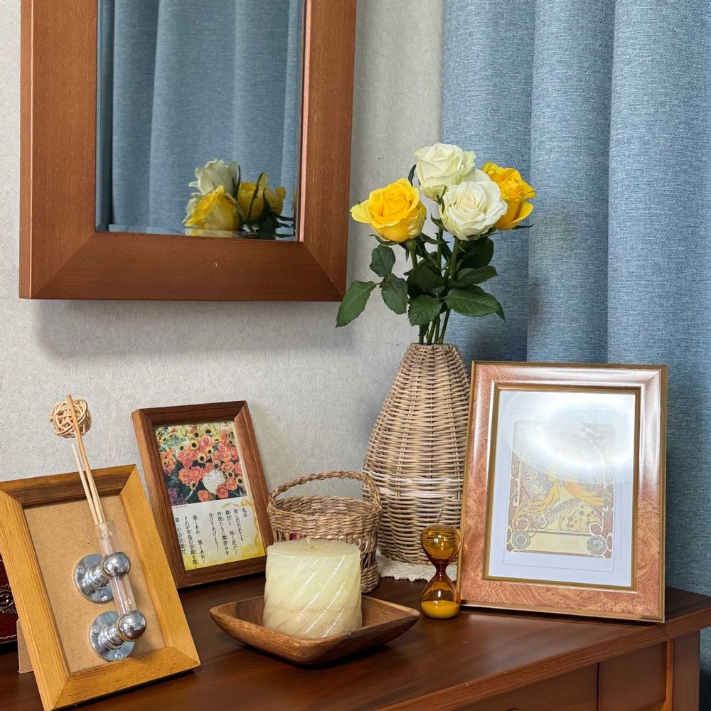 インテリア仏壇「鏡壇ミラリエ」「鏡壇ミロワ」に今日(12/25)の誕生花の「バラ(薔薇)」 を飾ってみました。