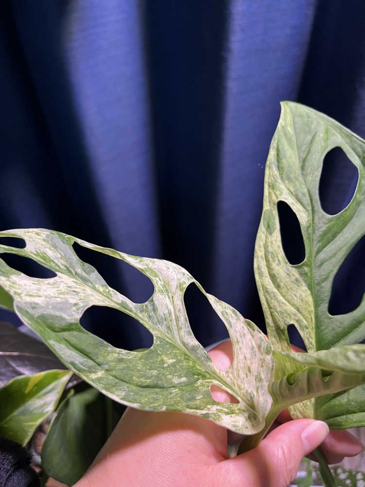 マドカズラミントは、しばらく右の葉の様に、明るめのグリーンの斑しか入らなかったのですが、突然白っぽい斑が入る様になりました🧐