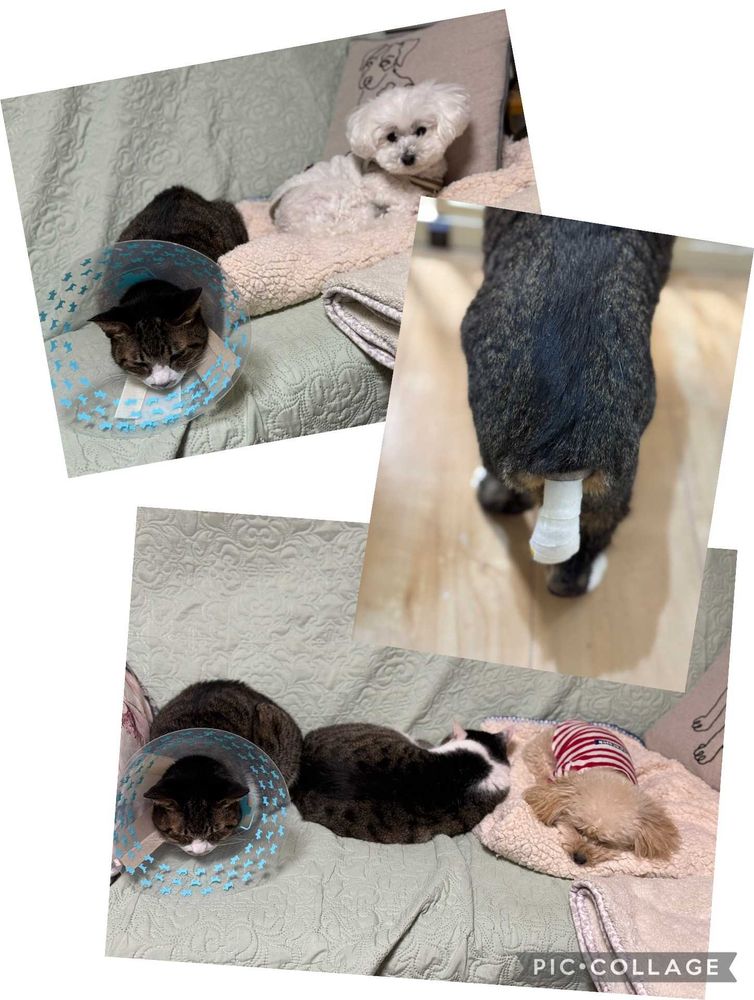 犬猫の仲のわたとエドですが、具合が悪いのわかっているのか追い払わず一緒に寝ていました❣️