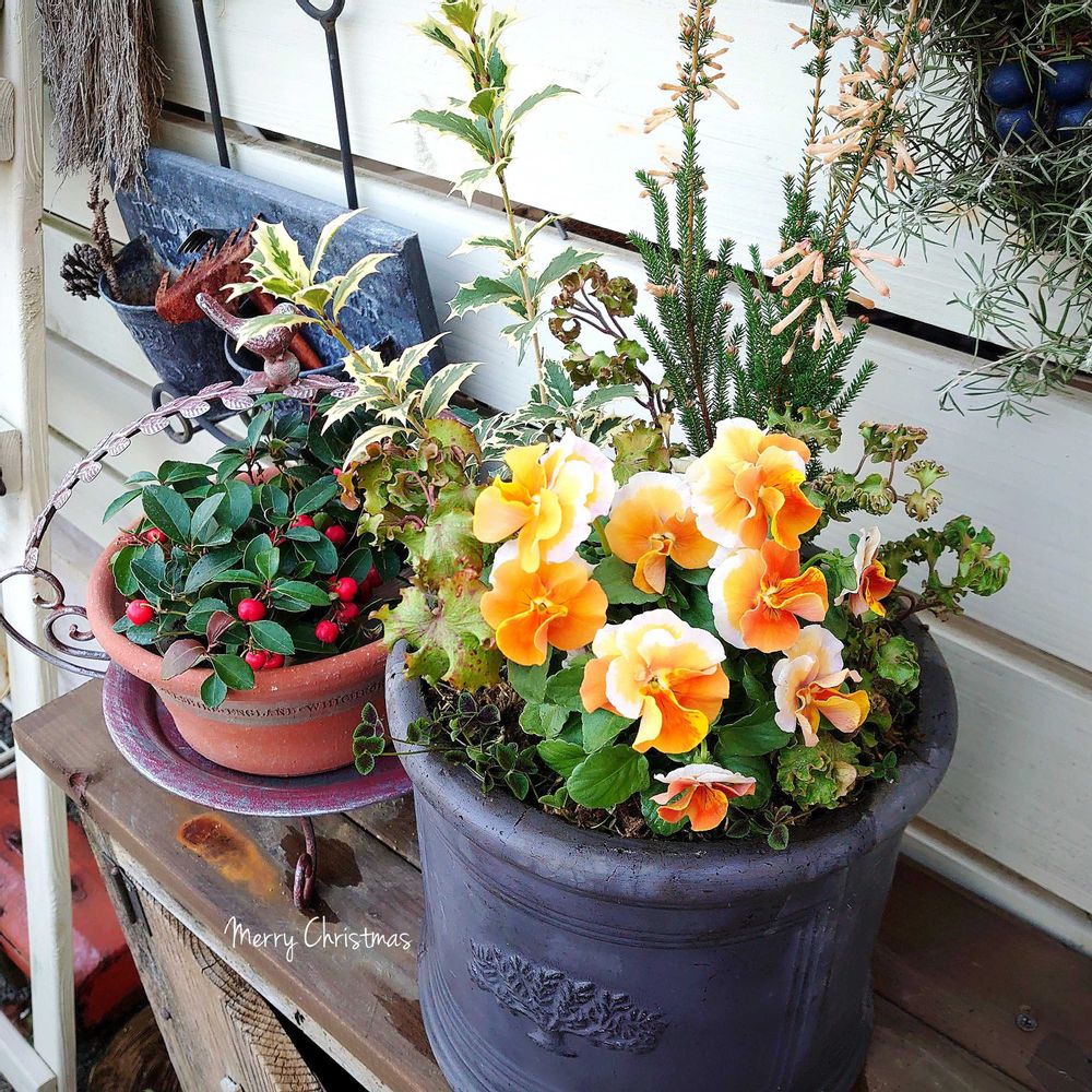 毎年おなじみになってきたアンジュフルールを使って寄せ植えを作ったので少しだけクリスマスっぽくディスプレイして撮ってみました🤭