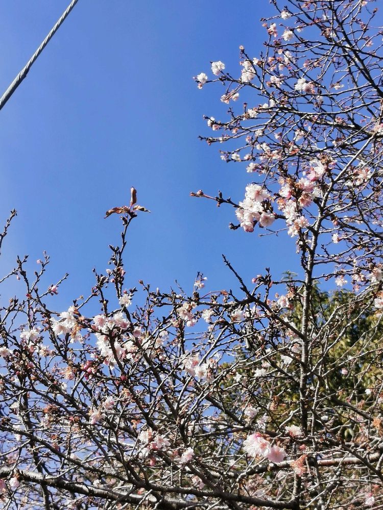 秋頃から、ずっと咲いている不思議な桜です。🌸🌸🌸🩷🎶